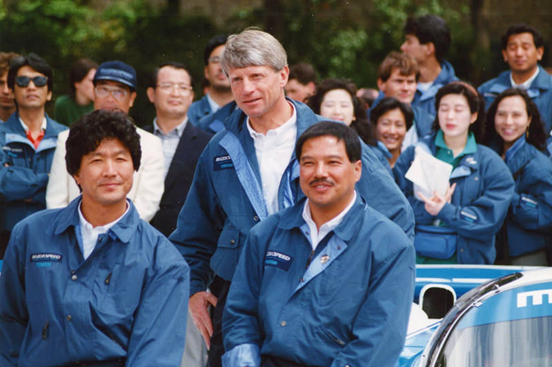 Mazda France and Mazda UK were influential in the formation of these early global teams. They provided a great deal of assistance, from receiving and transporting supplies from Japan to providing vehicles for transportation. Also, through their auspices they were introduced to key people involved in the team such as Tom Walkinshaw, Pierre Dieudonné, David Kennedy and Jacky Ickx, who helped the Mazda team grow. When the team was spun off from Mazda Auto Tokyo as Mazdaspeed, team manager Takashi Ohashi acted as the main contact with the ACO and FIA, the organizers of the Le Mans race, while Terada himself drove the race cars and worked hard to keep the team running smoothly. The 24 Hours of Le Mans is not only a weekend race, but also a long event that starts more than a week before the race, and includes vehicle inspections, practice, and qualifying. Terada, who early on was aware of the importance of meals, clothing, and lodging, introduced a cuisine team that could handle multi-national teams, introduced a team of doctors to take care of the drivers' physical condition, and contracted with a signing team that specialized in putting up signboards for 24 hours in the signing pit located at the old Mulsanne corner. From 1989 onwards, when Mazda began to aim for higher finishes using its four-rotor engine, the team had more than 100 drivers and staff, including members from Japan, the UK, France, Germany, Ireland, Belgium, Sweden, and Brazil. By 1991, when Mazda took victory, the team had a total of 120 people.