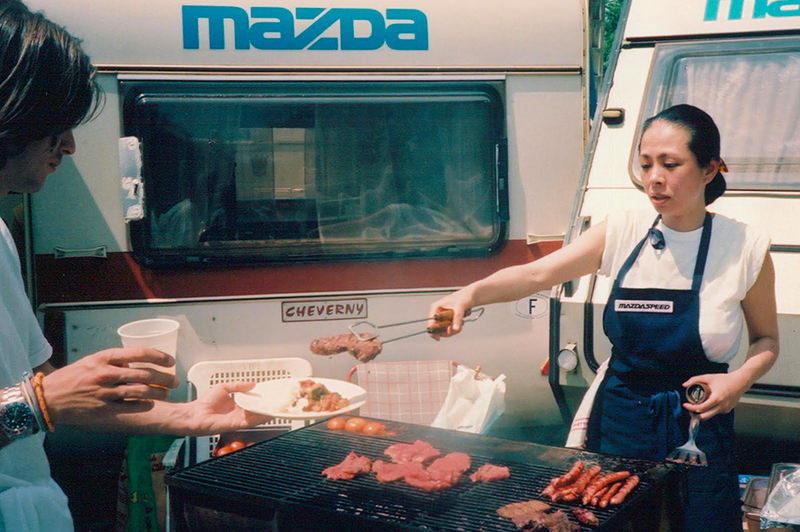 One of the hardest jobs of managing a large global team fell on the culinary team that provided the meals. Terada sought the help of Masayo Waki (now a cooking researcher), who was living in Paris for her culinary training at the time. Waki worked as a chef for the Mazda team for 11 years from 1981 to 1991, gaining experience in the field. They had to ensure that people with different dietary habits, religious beliefs, lifestyles and cultures could get through Le Mans Week without issue, and that accidents such as food poisoning would not occur during Le Mans, which is held in the summer. While food can sometimes facilitate communication between team members, there are also times when people's likes, dislikes, and habits can prevent them from performing at their best. On Fridays, when there was no driving schedule, they served beefsteak and pork cutlets to “win over the enemy”, and on Sunday mornings, when it was particularly tough on the cars and pit crews, they prepared somen (thin noodles) which are gentle on the stomach. To serve 120 people, it is not only difficult to buy the ingredients and cooking space, but also to prepare the tables and tableware, to coordinate the serving staff, and to wash the dishes, it is like running a popular restaurant in downtown Tokyo. Furthermore, the menu had to be written in three languages to be understood. The Mazda team's food was so well received that even people from rival Japanese teams who were participating in the event at the time came to eat with them.
