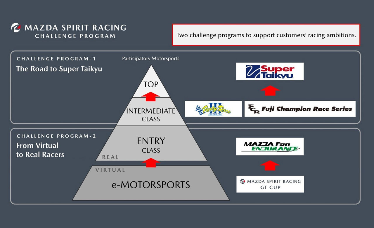 Today, Mazda Spirit Racing competes full-time in the Super Taikyu Series with modified production models. The team fields a Mazda MX-5 and Mazda3, running on alternative fuels, as they go head-to-head with competitors from Japan and abroad. Their racing activities serve a dual purpose: exploring technologies that can be applied to mass-produced vehicles while developing the skills and capabilities of Mazda's engineers and mechanics.