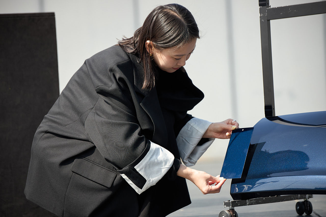 Exactly. The new challenge was how to make the shadowed areas read as navy without direct light. How far could we push the saturation? How should the new mica particles be applied to achieve the right depth of color? That was when we decided to consult with paint engineer Nakamura.