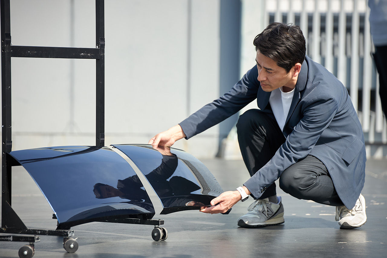 Even on screen it was beautiful, but when the physical color chip came out, I felt a genuine surge of emotion. Thanks to the engineers' dedication, we achieved what I'd describe as high-resolution paint, particle presence reduced to an extreme degree, with a precise, concentrated brilliance. We've created something I'm genuinely proud to call a Mazda standard color.