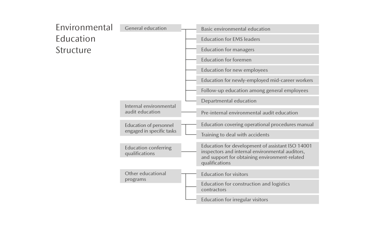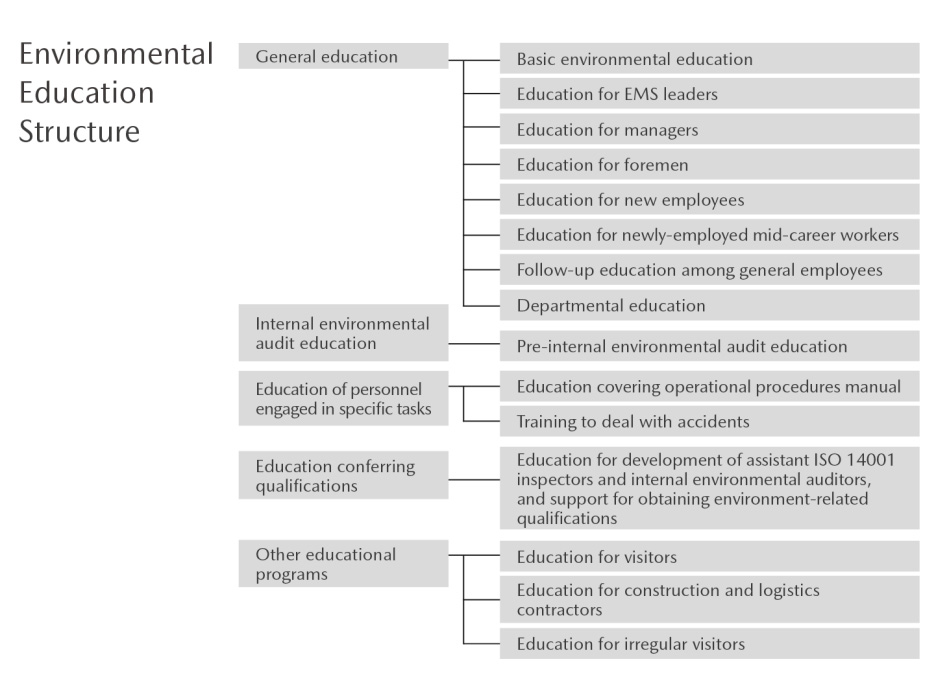 As part of its environmental management system, Mazda implements environmental education programs—covering topics such as global environmental issues, trends inside and outside Japan, the Company's environmental initiatives, and environmental preservation activities at different workplaces—for all employees once a year and for environmental management system leaders twice a year. The Company also encourages employees to obtain environment-related public qualifications and offers support for employees working toward these qualifications, including financial support through the Mazda Flex Benefit System.*