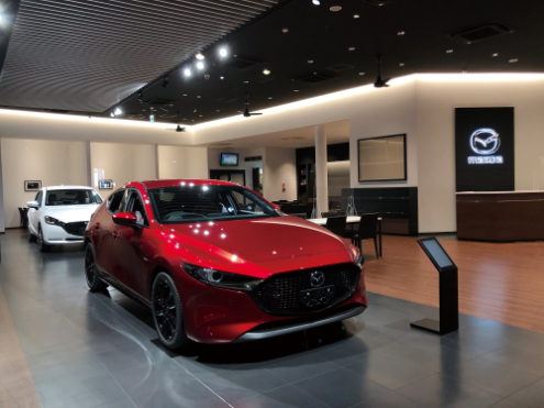 Since FY March 2015, Mazda has been developing New-Generation Showrooms, stores based on a new concept for sales outlets, both in Japan and overseas to allow customers to experience the attractiveness of Mazda and its vehicles. Under the supervision of Mazda's Design Division, the showrooms' interiors and exteriors are designed using the colors of black, white, and silver, with black-based facility signs,* and, as accents, wood is used to create comfortable spaces with atmospheres exuding warmth, dignity, and quality. The Company is also developing New-Generation Showrooms overseas based on the tastes of the respective markets in collaboration with local sales-related Group companies.