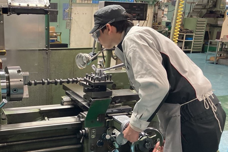 鉄の塊を旋盤という機械で回転させ、刃物を当てて0.001㎜(1ミクロン)単位で図面形状に加工していく競技です。試作部では訓練道場を保有しており、全国大会優勝を目指し、日々厳しい訓練を行っています。