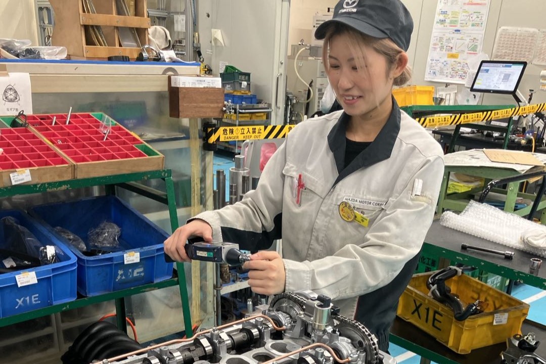 将来のSKYACTIV TECHNOLOGYを支えるエンジンやトランスミッション部品の製作、組立を行う他、電気自動車や新型ロータリーエンジンなど、高精度かつ軽量化を求められる難易度の高いモノづくりを行っています。