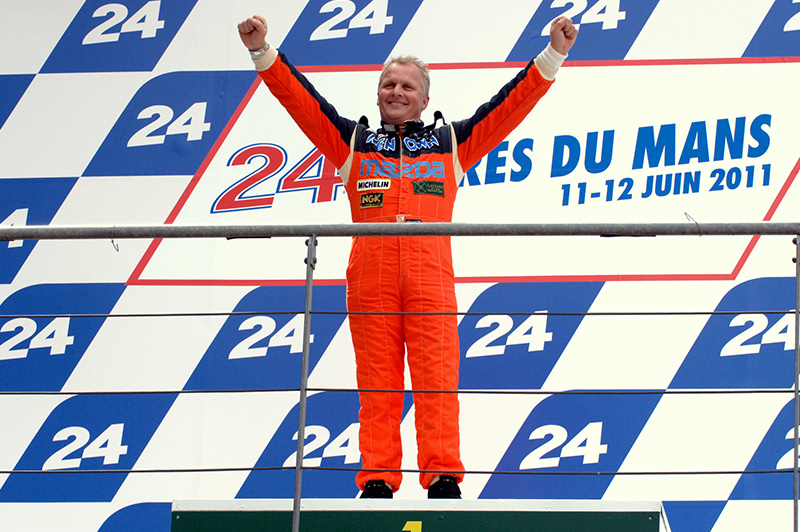 ルマン優勝20周年を迎えた787B-002 55番は、徹底的なオーバーホール整備を受けて、再びサルトサーキットを走る機会を得ました。1991年当時のメカニックや開発を担当したメンバーを中心に約半年をかけてフルレストアされ、マシンは完全復活しました。2011年6月のルマン24時間レース直前に、優勝ドライバーのひとりであるJ.ハーバートのドライブでフルコースを全開走行。観客からは拍手と大歓声で歓迎を受けました。1991年ゴール直後、脱水症状で表彰台に上がれなかったハーバートが、20年後のこの日に表彰台に押し上げられるという、ACOの粋な計らいもありました。ちなみに優勝マシンである787B-002はルマン後に永久保存とされたため、残るJSPC参加用として急遽製作された787B-003も同時にレストアされ、動態保存されています。
