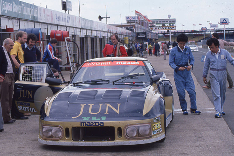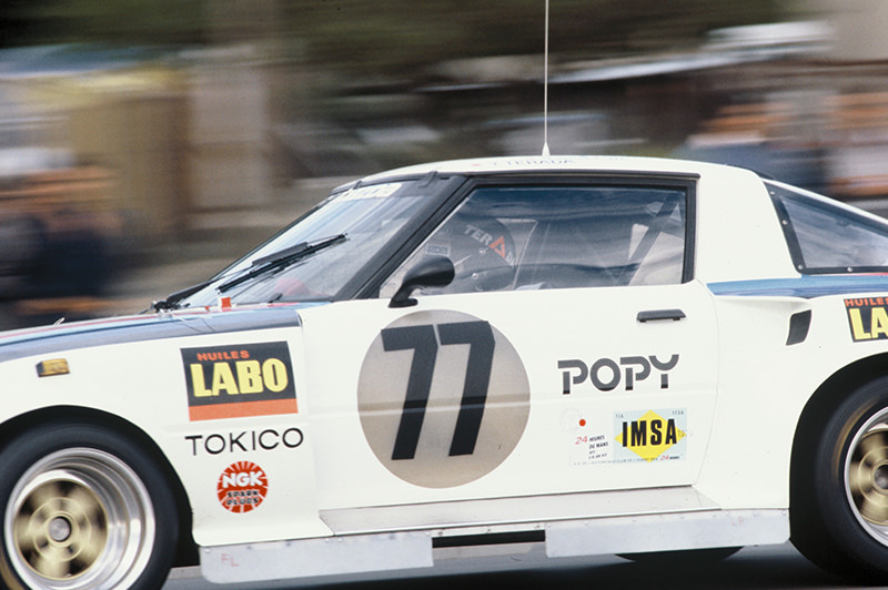 初代RX-7を改造した1982年のRX-7 254は、3年前にルマンにエントリーしたRX-7 252iの発展系マシンでした。ボディを捩らせながら走る姿は、現代の地を這うような姿のGTマシンとは趣が異なりますが、ハンドリングマシンとして乗りやすかったようです。1979年に始まったアメリカのIMSAシリーズにサービス派遣されたマツダの技術者達が全米各地のRX-7ユーザーの使用状況を調べ、RX-7レースカーのシャシー剛性を補う改善メニューを多数編み出していました。それらの改善策をこのRX-7 254にも盛りこまれており、ドライバーの寺田陽次郎は「快適なハンドリングのクルマだった」とコメントしています。