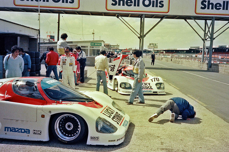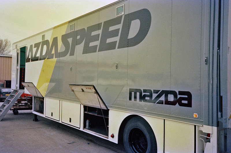 この年のルマンの86号車はニコンがスポンサーながらマシンカラーやチームウェアはシルバー、イエロー、ホワイトが主体でした。このカラーの組み合わせがしばらくマツダスピードのイメージカラーとして使われ、トランスポーターやサービスカーなども同様のカラーリングが施されました。