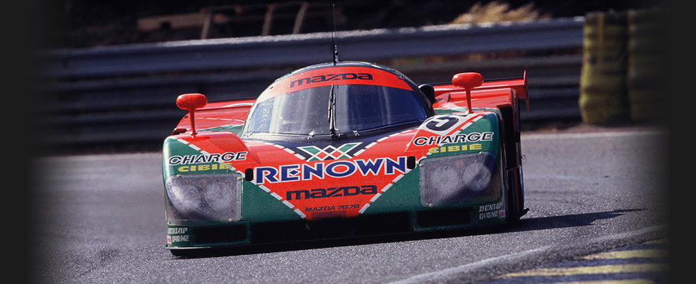 マツダロータリーエンジン搭載のグループCレースカーの集大成として誕生したマツダ787B。マツダの開発陣と実行部隊であるマツダスピードが総力を挙げて開発し、1991年の第59回ルマン24時間レースではカーナンバー55番、シャシーNo.787B-002のマツダ787Bが1周13.6kmのサルトサーキットを362周(約4,923km)を走破し、日本車初の総合優勝を飾りました。レース中はピットイン時の給油、タイヤ交換、ドライバー交代、ブレーキパッド交換等のルーティン作業以外、タイムロスにつながるようなトラブルは発生せず、設定されたラップタイムを正確に刻み、時にはペースアップしてライバル車を追い上げ、引き離してトップで栄光のチェッカーフラッグを受けました。