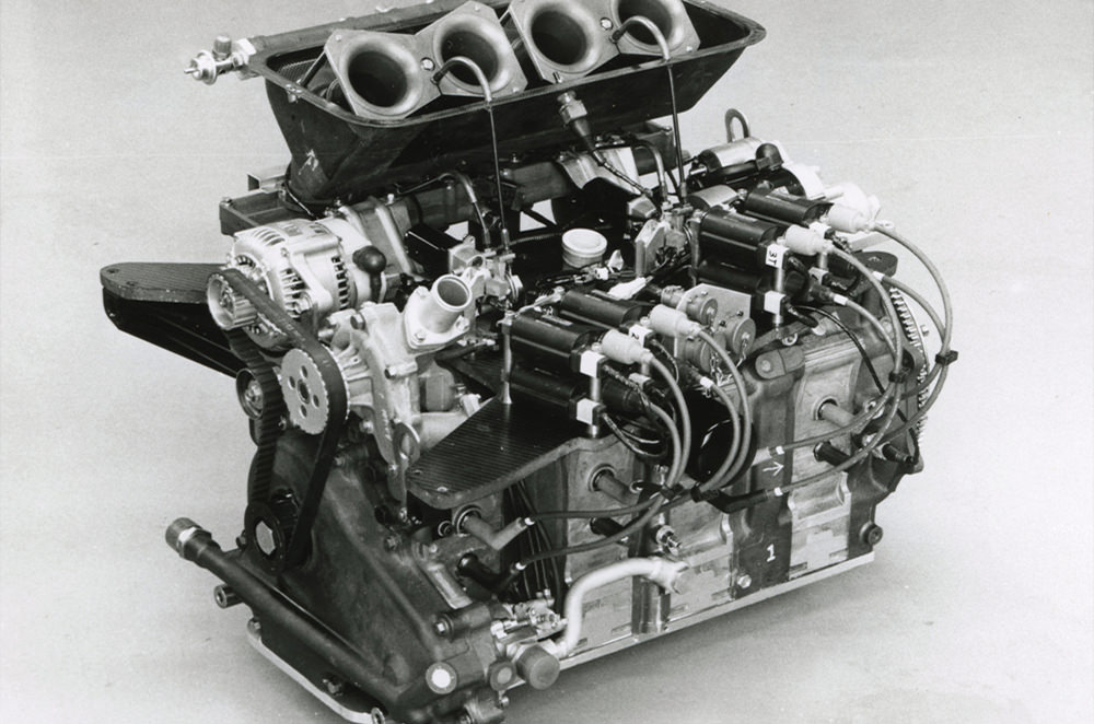 初の4ローターエンジンの13J型も短期間に組み上がりましたが、出力は単純積み上げの600 PSには届かず、しかも軽量小型でコンパクトなパッケージがREの利点でしたが、13Jエンジンは長く重くなってしまいます。それでも数ヶ月でエンジン前長を大幅に短縮し、軽量化した改良型13Jエンジンを開発しています。しかし、急造が祟って1988年は4ローターエンジンを搭載した新開発のマツダ767は幾多のトラブルに見舞われ大きく遅れ、総合17位と19位という不本意な結果となりました。