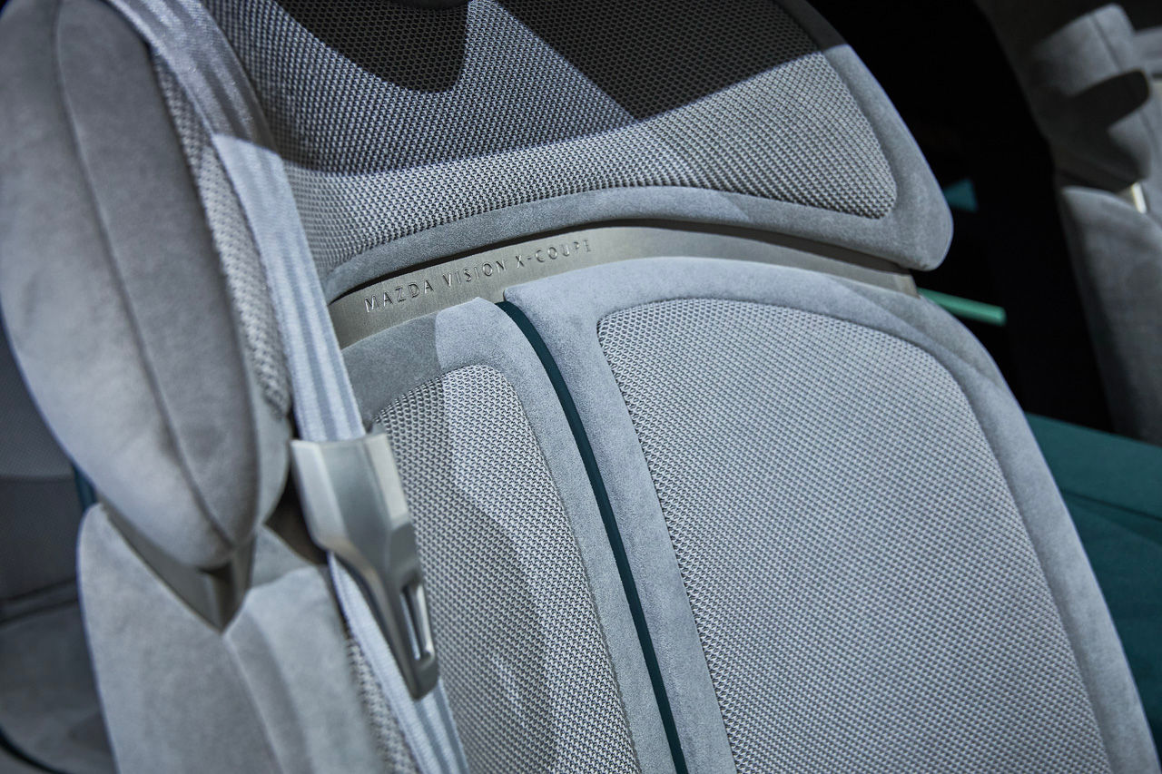 若手デザイナーを中心にまとめ上げられたMAZDA VISION X-COMPACTは、インテリアも独特。エクステリアとの連続性をもたせて、ラフに乗れるギア感を演出している。