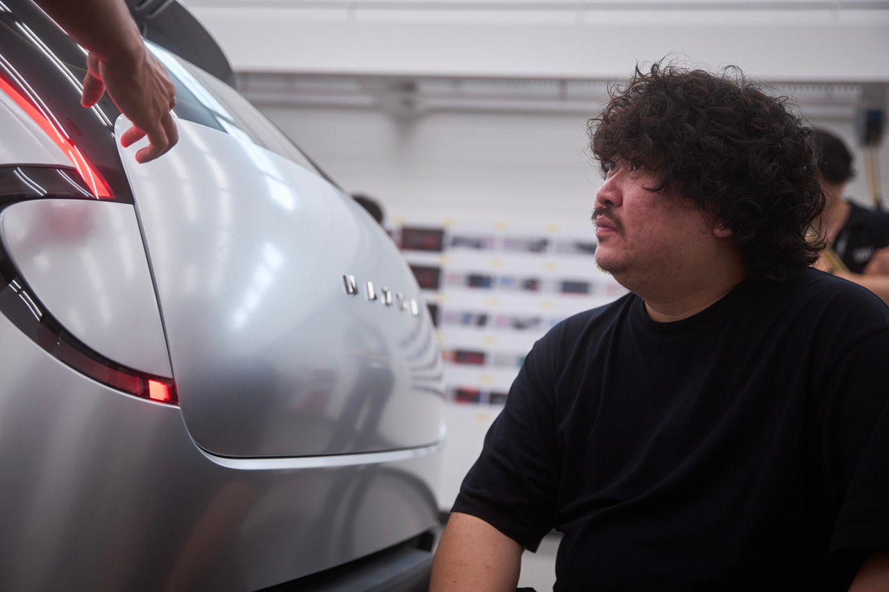VISIONモデルのようなショーモデルは、外部のモデルメーカーによる「ファブリケーション(デザインモデル製作)」という工程を経て展示可能な1/1スケールの実車になります。私たちが構築したデザインを正確に再現してもらうには、ときに細かくシビアなやり取りも必要です。だからこそ製造を始める前から業者様には「サプライヤーとしてではなく、マツダとワンチームになって進めていきましょう」と熱弁し、今回のVISIONモデルを絶対にいいものにするための協力をお願いしました。その熱意が通じたのか、今ここにあるVISIONモデル2台は完璧な精度でファブリケーションされたクルマに仕上がりました。