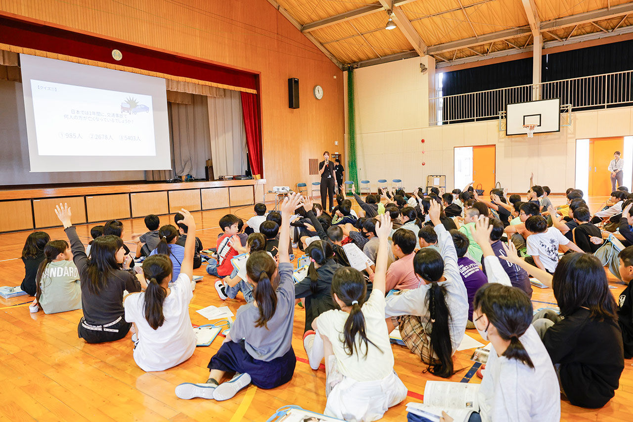 小学校社会科「自動車をつくる工業」の学習内容を踏まえ、自動車づくりが地域の多くの企業と連携して成り立っていることを学びます。あわせて、移動することの価値や「わくわく」を支えるクルマの役割について考えます。